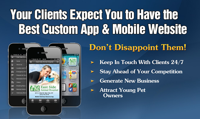 Now is the time to establish your veterinary hospital’s presence online, as prospective clients are using their mobile phones more than ever before – and especially when they’re seeking a veterinarian. Without a custom Mobile Veterinary Website and Veterinary App designed by VetNetwork, your practice can fall dangerously far behind competitors.